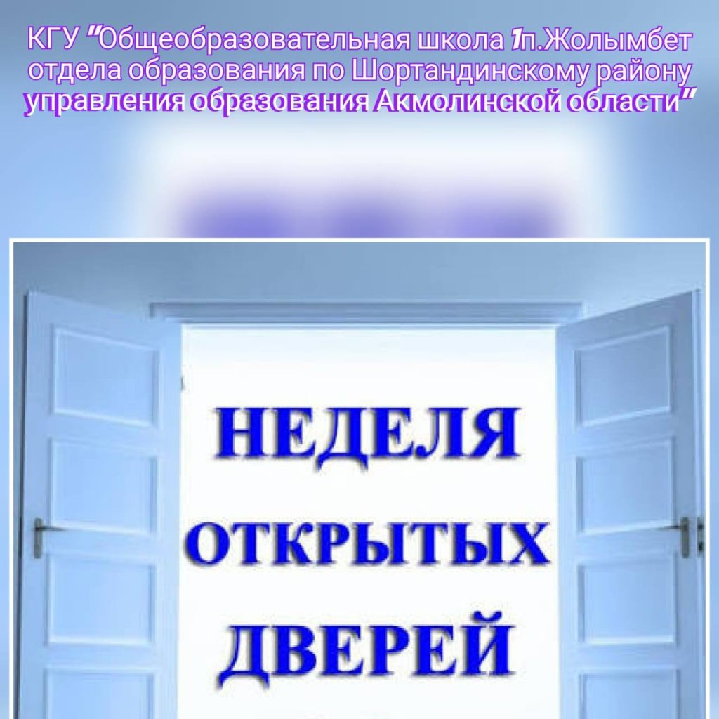 17.11–21.11 аралығында Ақмола облысы білім басқармасының Шортанды ауданының білім бөліміне қарасты «Жолымбет кентінің №1 жалпы білім беретін мектебі» КММ-де «Отбасы мен мектеп: Біртұтас көзқарас» тақырыбындағы ашық есік апталығы өтуде.
