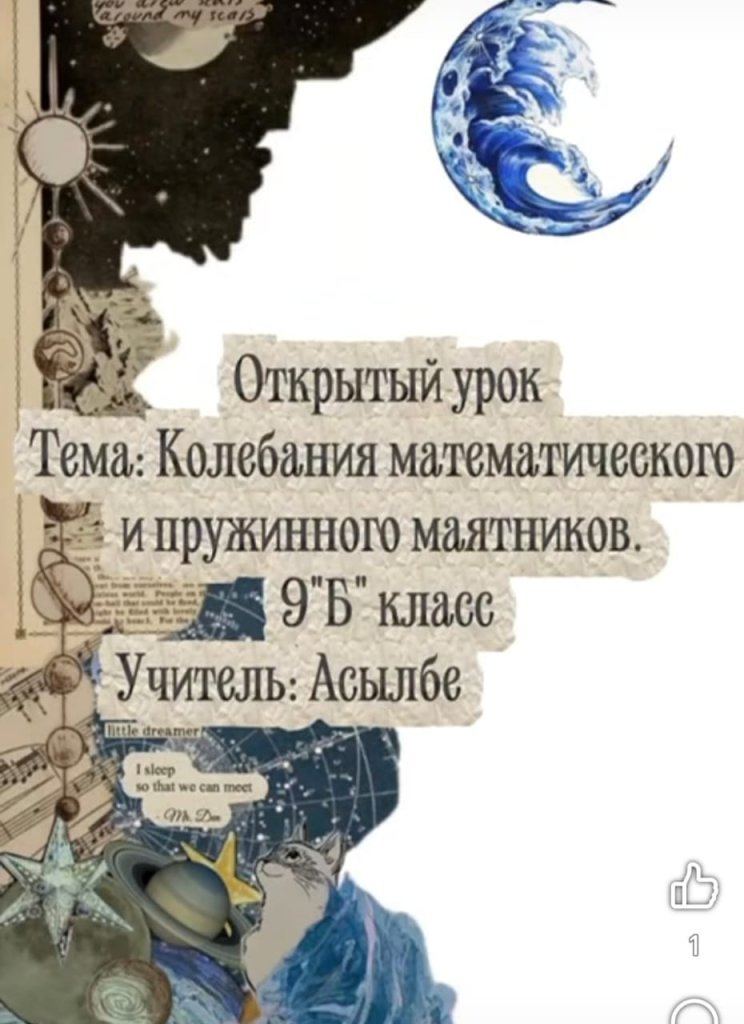 2026 жылғы ақпан айында физика пәні мұғалімі Асылбекова А.Н. 9 «Б» сыныбында «Математикалық және серіппелі маятниктердің тербелістері» тақырыбында қызықты ашық сабақ өткізді.