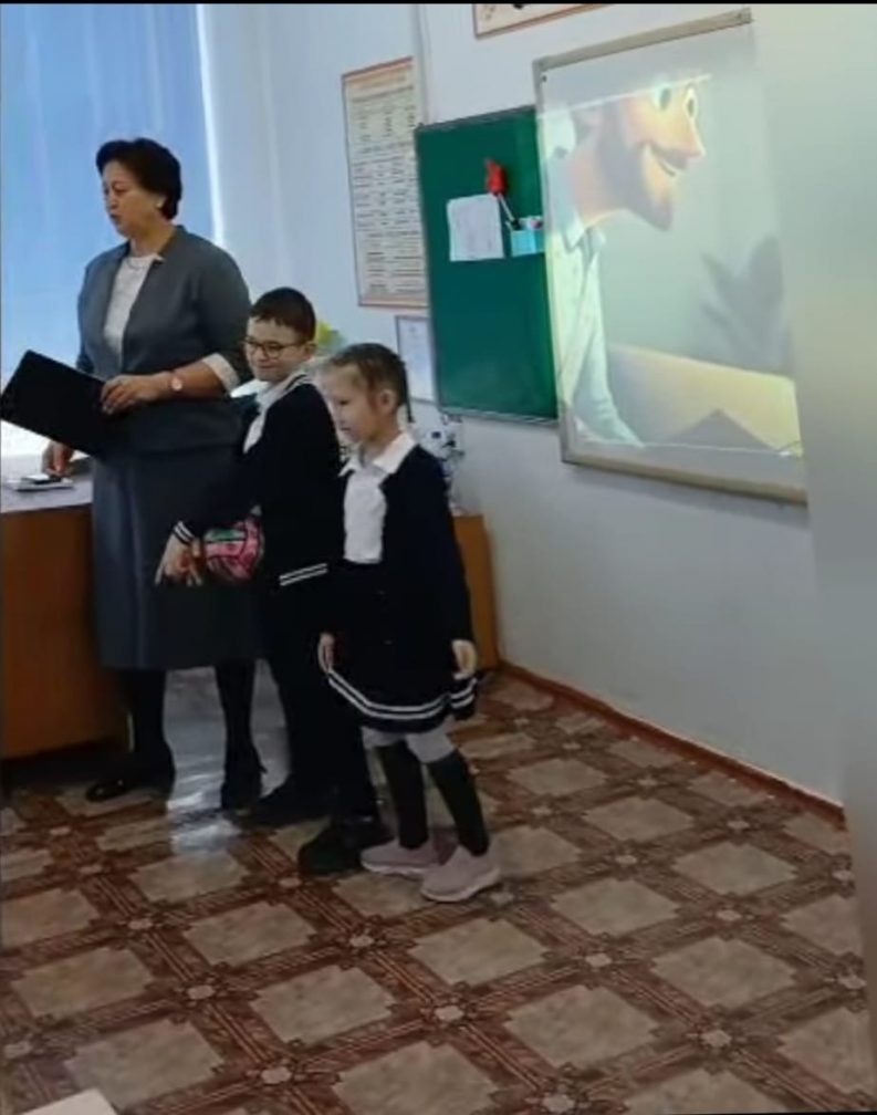 Көкшетау облысы, Шортанды ауданы, Жолымбет кентіндегі №1 жалпы білім беретін мектептің тәлімгері мен кітапханашысы бастауыш сынып оқушыларына театрландырылған көрініс/сценка дайындады: «Жақсы мен жаман дегеніміз не?».