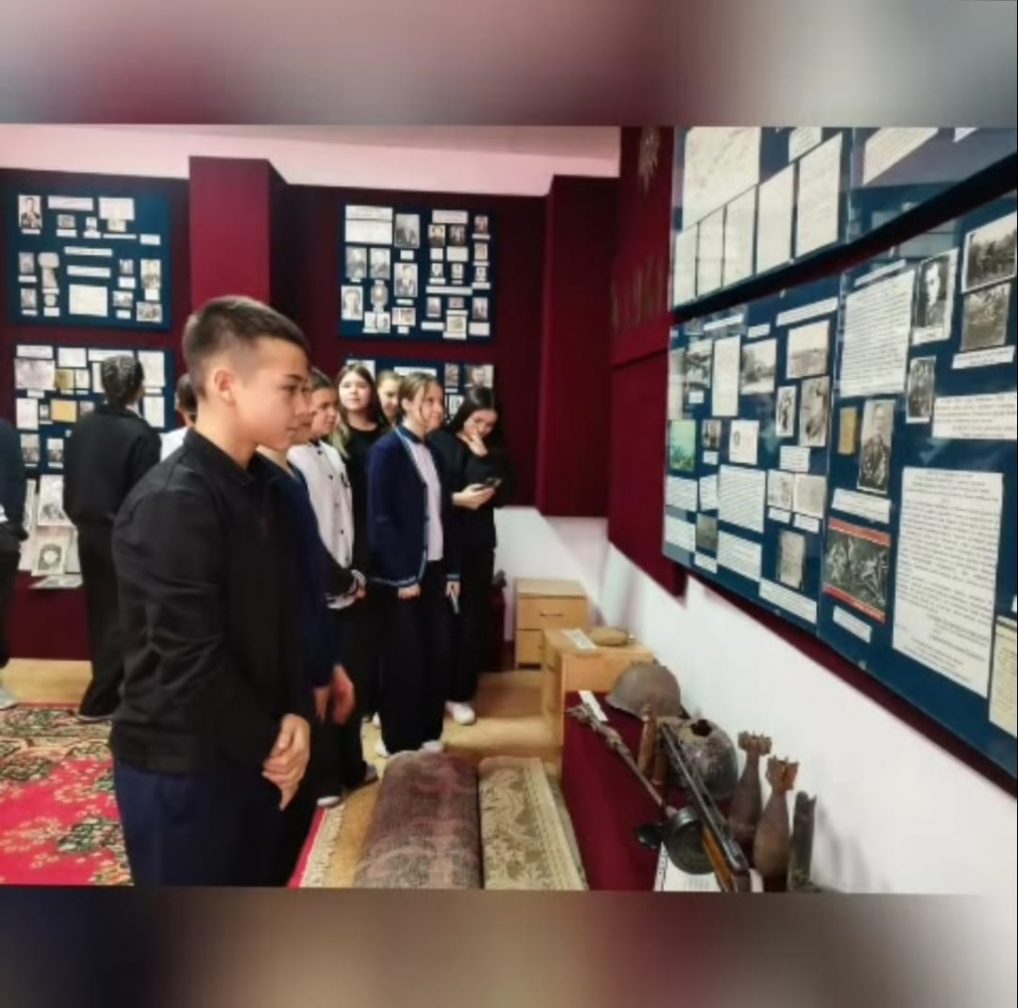 Оқушыларға жерлестерінің ерліктері туралы айтылып, мұрағаттық фотосуреттер, құжаттар, әскери жәдігерлер көрсетілді. Балалар қызығушылықпен тыңдап, сұрақтар қойып, батырлар рухына құрмет білдірді.