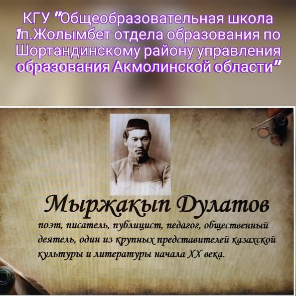 Воспиталық жұмыс жоспарына және «Балалар кітапханасы» жобасын іске асыру аясында Ақмола облысы Білім басқармасының Шортанды ауданы Білім бөліміне қарасты КММ «Жолымбет кентінің №1 жалпы білім беретін мектебінде» қазақтың көрнекті жазушысы, алғашқы қазақ романы «Бақытсыз Жамалдың» авторы, ақын, публицист, ағартушы, мәдениет және қоғам қайраткері Міржақып Дулатовтың (1885–1935) туғанына 140 жыл толуына орай іс-шаралар өткізілді.