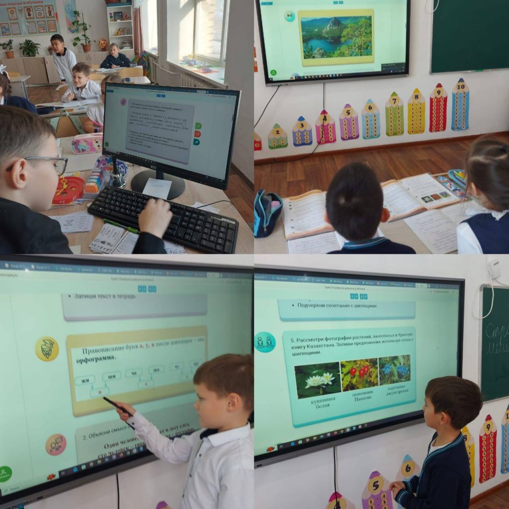 Сабақ барысында оқушылар шипящі дыбыстармен жазылатын сөздердің жазылуын қайталады. Олар платформа ұсынған тапсырмаларды орындады: бос орынға дұрыс әріпті қойып, шипящі дыбыстардан кейінгі дауысты әріптерді жазу ережесін қолдану; мақал-мәтелдермен жұмыс істеу; платформа ұсынған бейнероликті қарау; сөздерді тақырыптық топтарға бөлу; Қазақстанның Қызыл кітабына енген өсімдіктердің фотосуреттері бойынша сөйлемдер құру, шипящі дыбыстармен сөздерді қолдану.