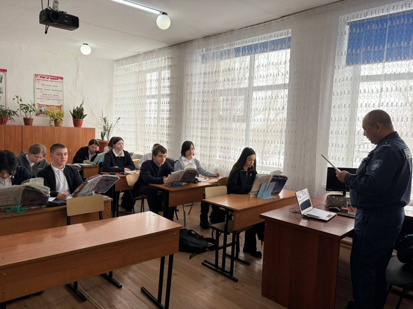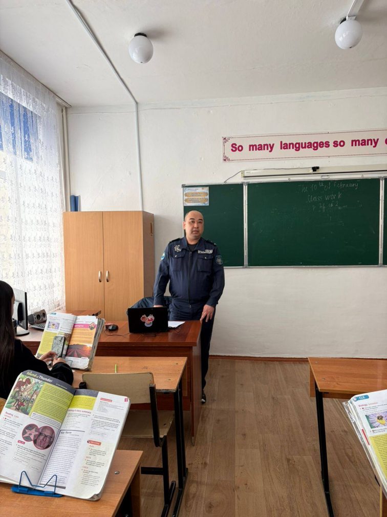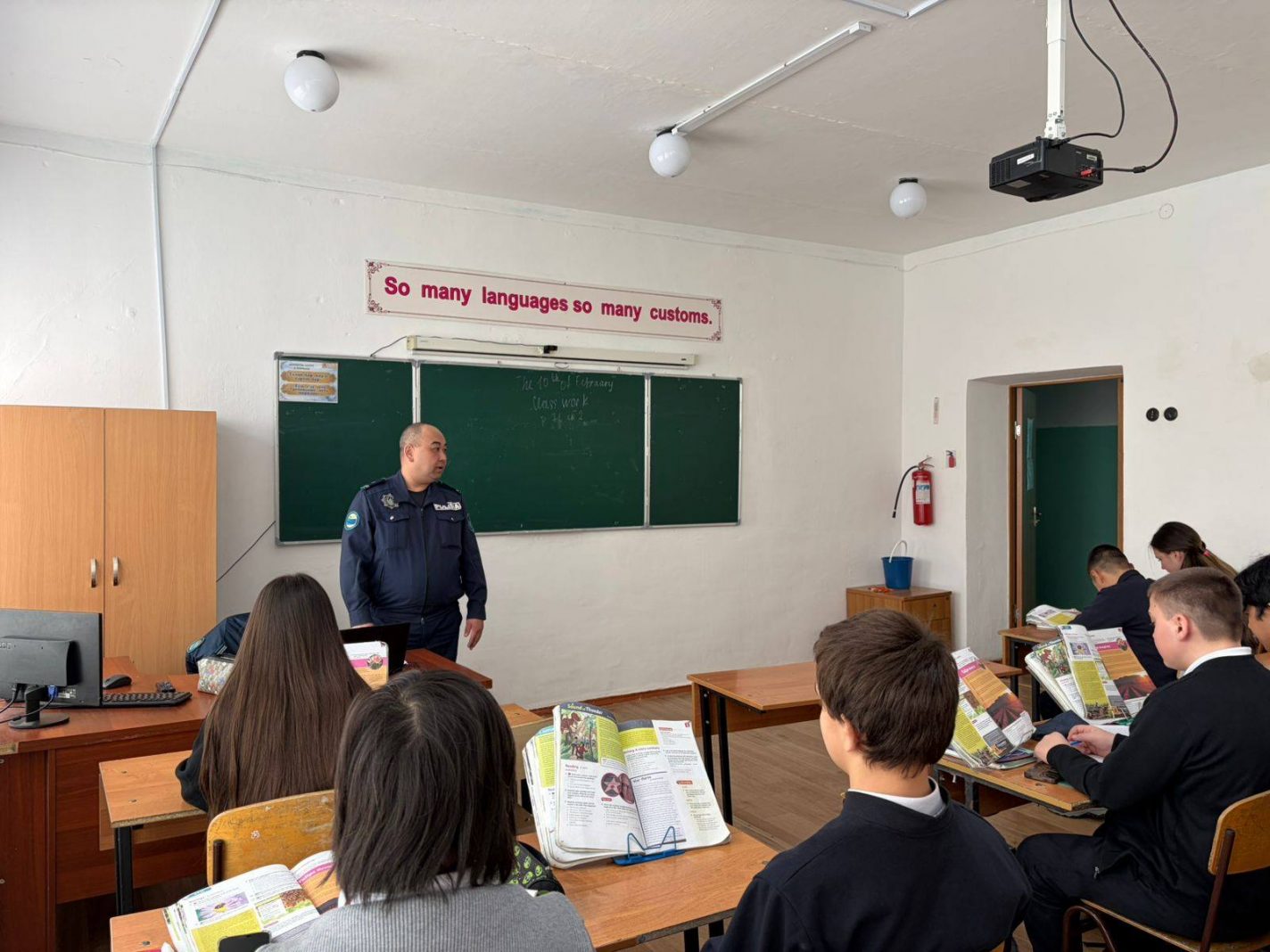 Лекцию оқушыларға учаскелік инспектор Самбетов Ж.Д. жүргізді. Кездесу барысында оқушыларға «қауіпті компаниялардың» қандай тәуекелдер туғызатыны, құрдастар тарапынан қысымды қалай тануға болатыны және жеке қауіпсіздік пен заңға қауіп төндіретін жағдайларда бас тартуды білудің маңыздылығы түсіндірілді.