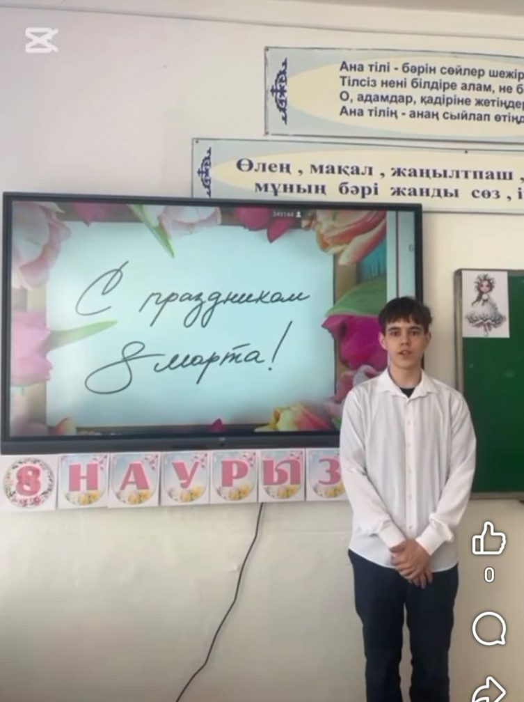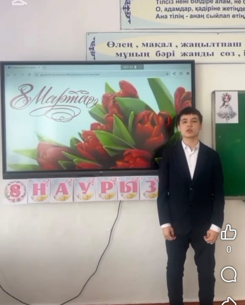 8 Наурыз – Халықаралық әйелдер күні. Бұл күні әйелдерді, қыздарды және қыз балаларды құттықтап, олардың қамқорлығы, еңбегі, мейірімділігі мен отбасыға, қоғамға және білім саласына қосқан үлесі үшін алғыс, құрмет және ризашылық білдіреді.