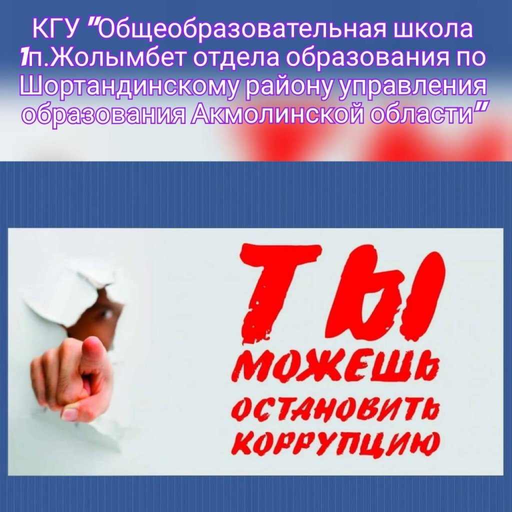 Жастар арасында сыбайлас жемқорлыққа қарсы мәдениетті қалыптастыру жөніндегі мемлекеттік саясатты іске асыру аясында, Ақмола облысы білім басқармасының Шортанды ауданы бойынша білім бөліміне қарасты Жолымбет кентіндегі №1 жалпы білім беретін мектебінің тәрбие жұмысы жоспарына сәйкес «Адал ұрпақ» клубының жетекшісі Серікболат Н. «Азаматтық қоғам және сыбайлас жемқорлыққа қарсы күрес» атты құқық сағатын өткізді.